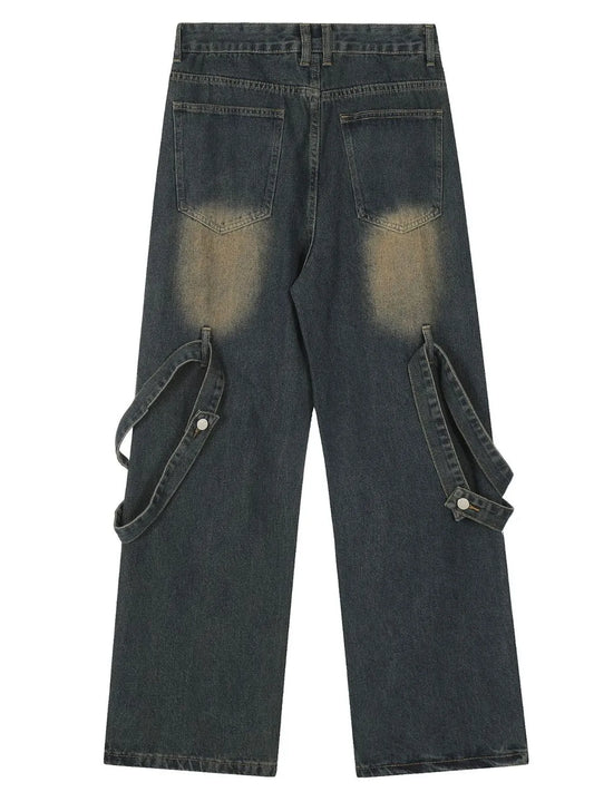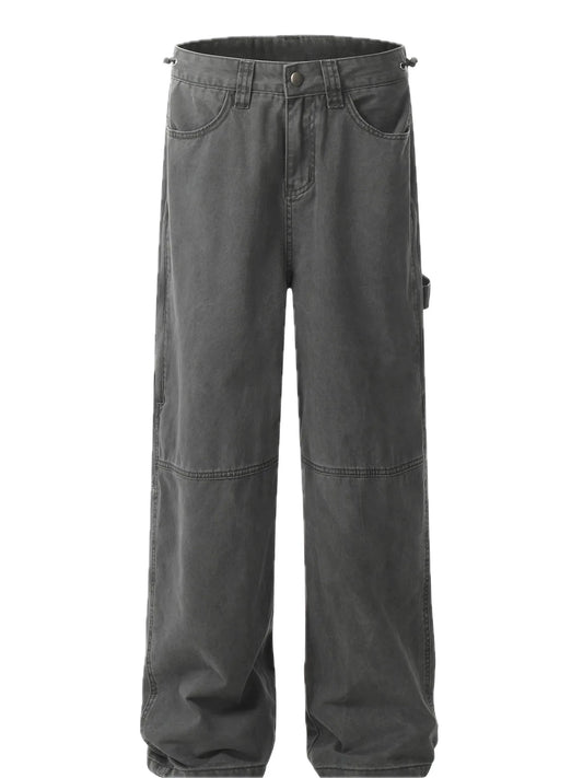 Mens Distressed Cargo Wide Leg Jeans Durable Casual Relaxed Fit Work Pants For Everyday Wear Trendy Streetwear