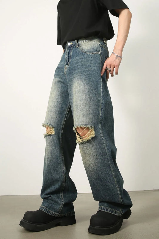 Mens Distressed Baggy Loose Fit Jeans Denim Pants Casual Everyday Streetwear Durable Comfortable Modern Fashion