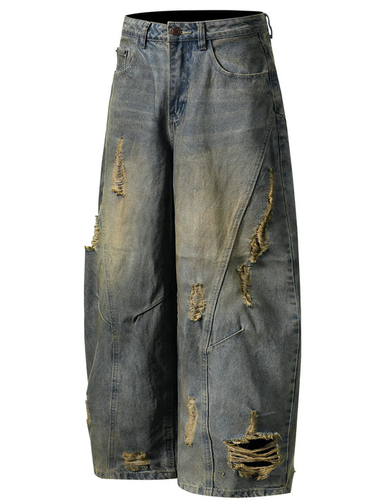 Mens distressed wide leg relaxed fit jeans washed denim for casual everyday wear versatile durable trendy all season