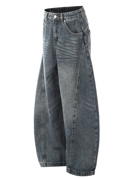 Mens Gradient Curved Jeans with Seam Detail Oversized Fit Pocketed Washed No Stretch Durable Everyday Wear Trendy