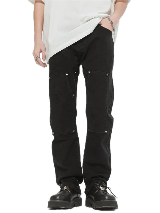 Mens Loose Fit Oversized Studded Pocket Jeans Cotton Blend Durable Casual Everyday Streetwear Bottoms All Season Wear