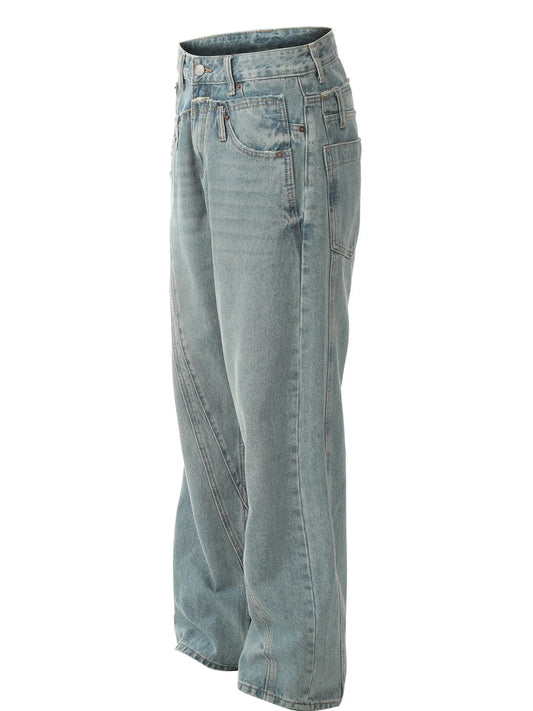 Mens Loose Fit Wide Leg Denim Jeans with Pockets Washed Slightly Stretchy Durable Cotton Blend for Everyday Casual Wear