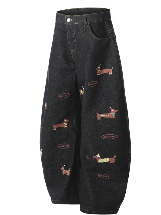 Mens Wide Leg Jeans with Dog Print Oversized Casual Everyday Pants for Men Slightly Stretchy 95 Percent Cotton