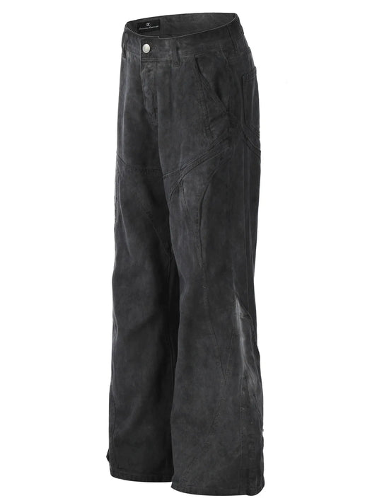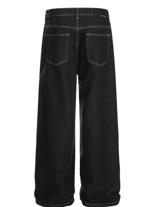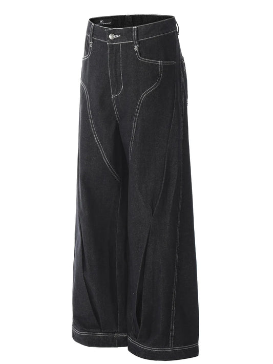Mens Wide Leg Jeans with Contrast Stitching Oversized Fit Pocketed Seam Detail Durable Denim Casual Pants for daily use