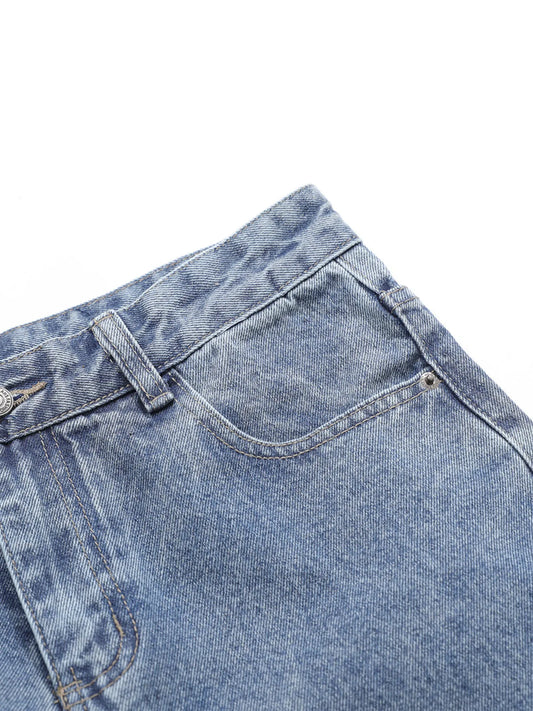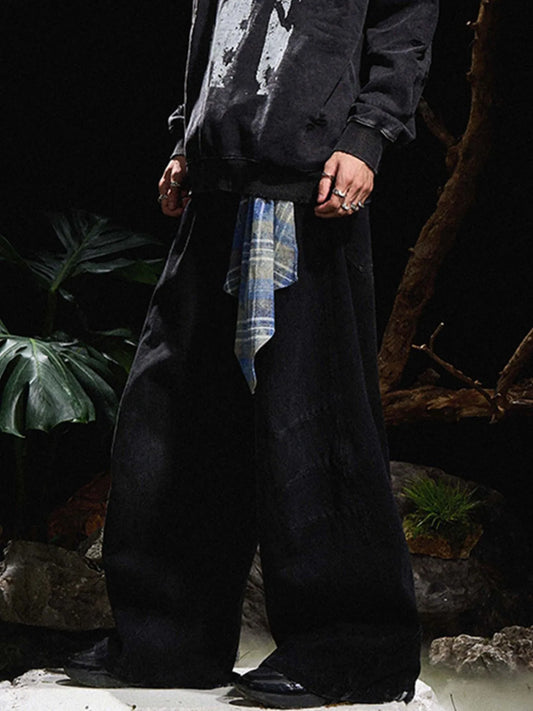 Mens wide leg jeans with patches washed denim casual relaxed fit versatile everyday trousers cotton blend fabric
