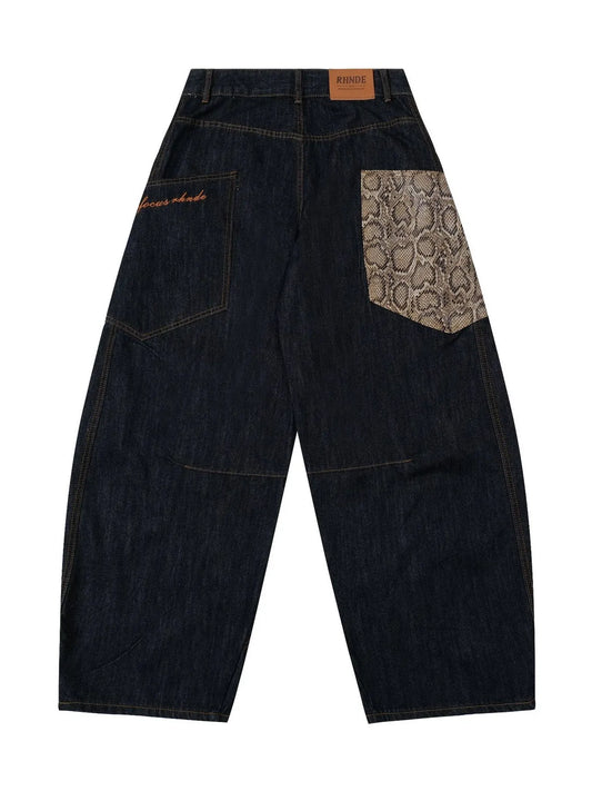 Mens wide leg jeans with contrast stitching oversized fit durable denim for casual daily wear streetwear style