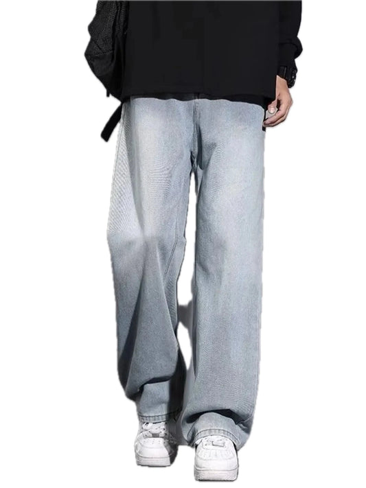 Mens Wide Leg Jeans Washed Finish Basic Design Durable Denim Pants for Everyday Casual Wear Relaxed Fit Classic Style