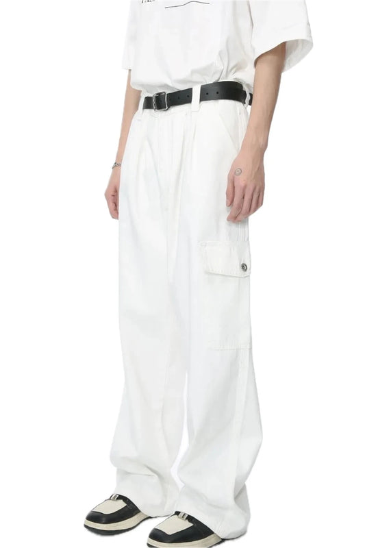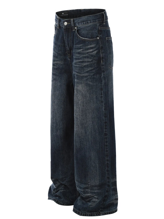 Washed Wide Leg Jeans for Men Loose Fit Denim Pants with Pockets Durable Casual Everyday Trousers for Daily Wear