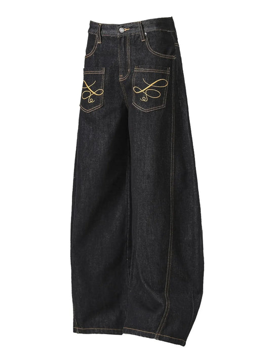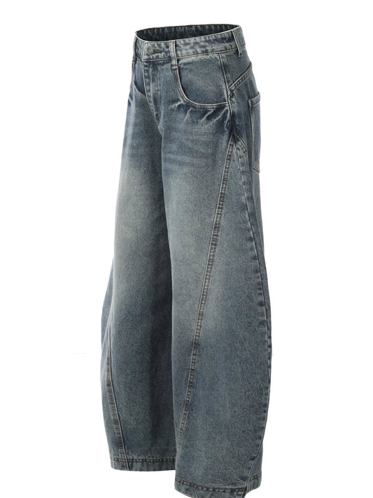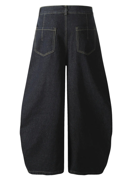 Men Wide Leg Balloon Jeans Pocketed Washed Loose Fit Baggy Durable Versatile Everyday Casual Denim Pants All Day Comfort