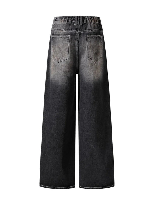 Men wide leg baggy jeans oversized washed pocketed loose fit casual daily wear streetwear trousers durable soft fabric