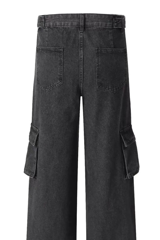Men Wide Leg Cargo Jeans with Pockets Washed Durable Slightly Stretchy Everyday Outdoor Pants Versatile Casual Wear
