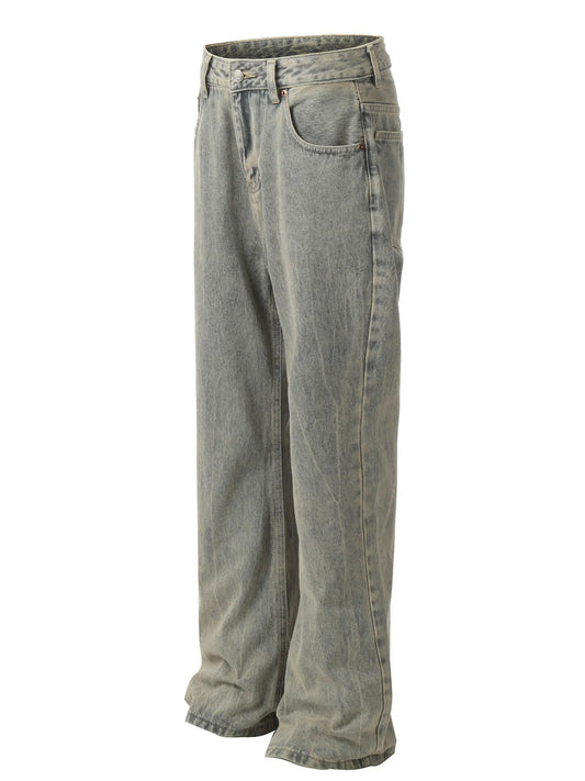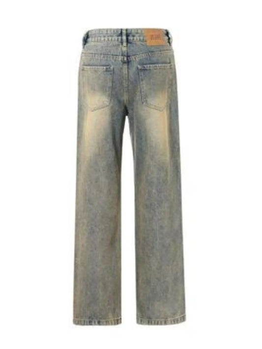 Men Vintage Washed Relaxed Fit Distressed Jeans for Everyday Casual Wear Durable Versatile Apparel High Quality