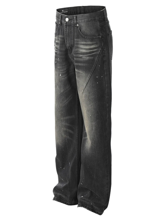 Men Washed Splicing Straight Leg Jeans No Stretch Classic Fit Durable Denim for Everyday Wear Versatile Casual Outfit