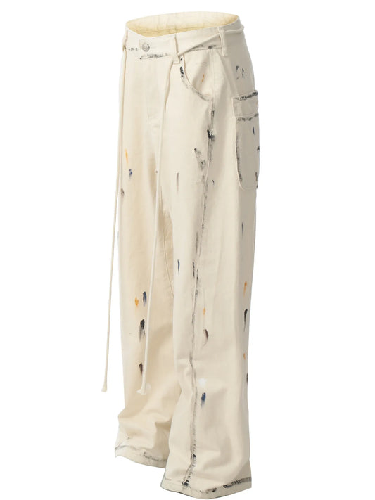 Men Wide Leg Baggy Jeans with Oversized Pockets Rope Belt Durable Denim Pants Casual Everyday Relaxed Fit Wear
