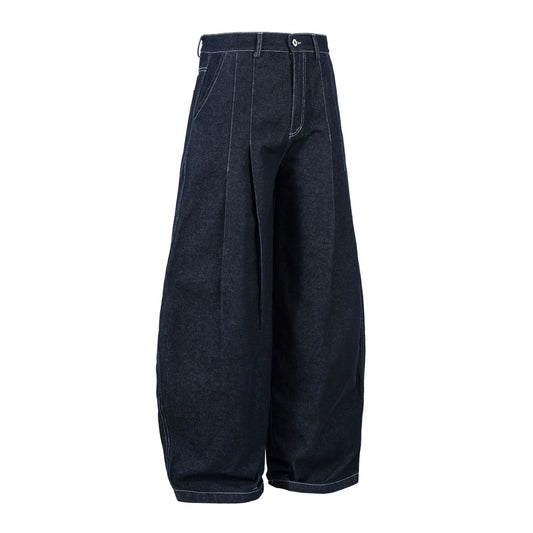 Men wide leg oversized jeans washed denim casual fit streetwear durable fashion pants with seam detail for everyday wear
