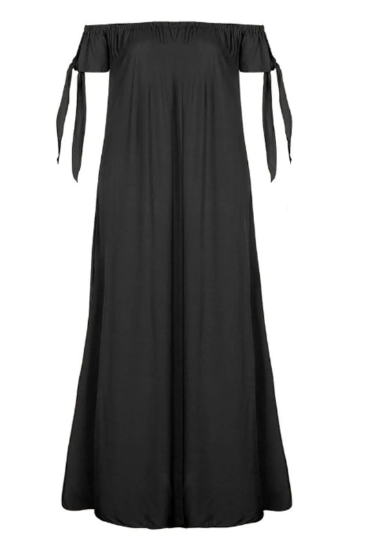 Women's Slit Shoulder Midi Dress With Tie Front Opaque Stretch Ninety Five Percent Polyester and Five Percent Spandex