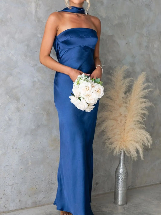 Women's Satin Tube Maxi Dress with Zipper Detail 100% Polyester Fabric Elegant Sleek Silhouette for Evening Wear