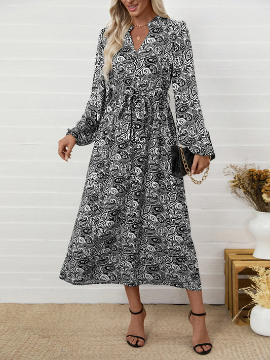 Women's Paisley Print Long Sleeve Midi Dress 100% viscose with flowing drape and easy everyday wear for versatile style