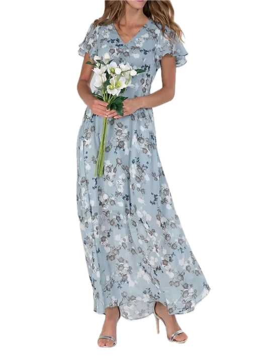 Women's Floral V Neck Flutter Sleeve Maxi Dress 100% Polyester Lightweight Flowing Silhouette for Everyday Wear