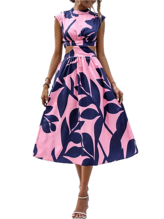 Women's Cutout Printed Sleeveless Mini Dress 100% Polyester Lightweight Casual Beach Vacation Evening Chic Party