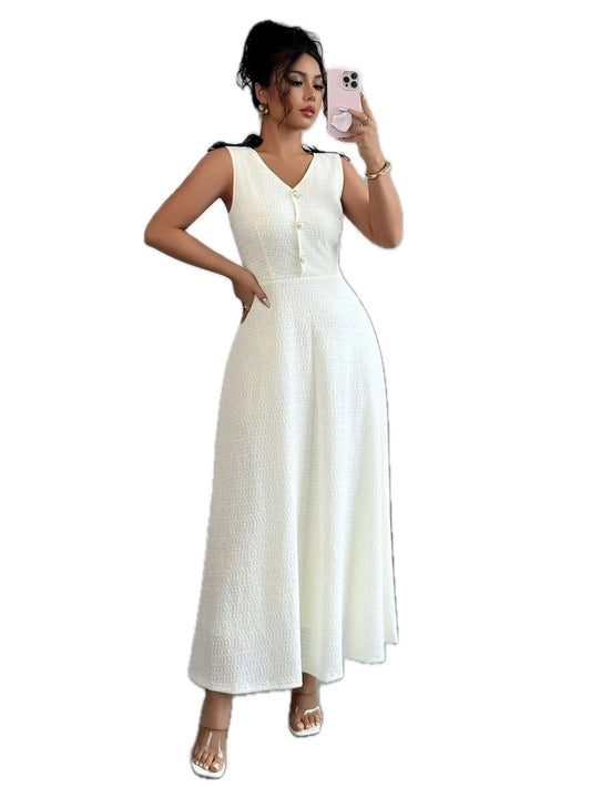 Women's Buttoned Sleeveless Maxi Tank Dress with Lined Bodice and Comfortable Fit 95% Polyester 5% Elastane Machine Wash