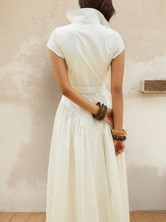 Women's Button Front Flounce Sleeve Dress 100% Viscose Lightweight Elegant Everyday Wear Soft Drape Breathable Versatile