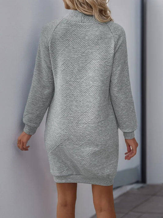 Women's Texture Mock Neck Long Sleeve Mini Dress with Decorative Button Sheer Opaque Stretch 95% polyester 5% elastane