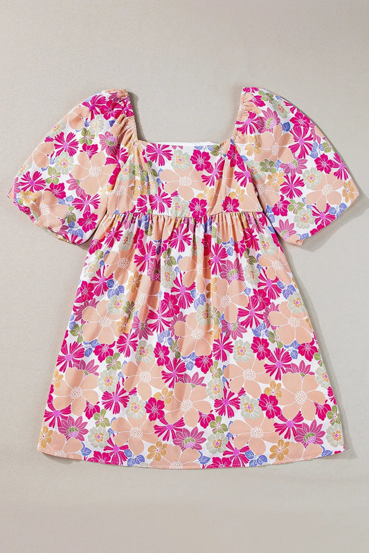 Women's Printed Square Neck Half Sleeve Mini Dress 100% Polyester Fabric Lightweight Everyday Wear Casual Chic Look