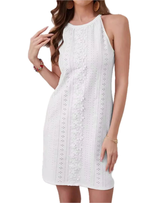 Women's Eyelet Flower Sleeveless Mini Dress 100% Polyester Lightweight Summer Casual Chic Everyday Wear Travel Ready