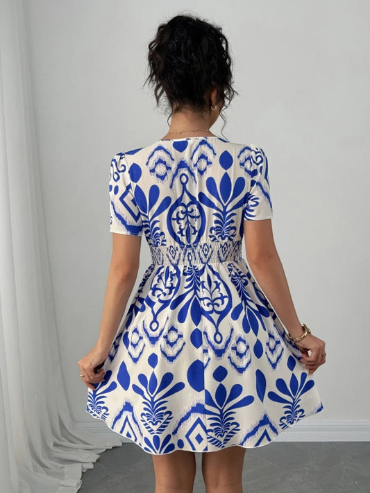 Women's Printed Surplice Short Sleeve Dress featuring hundred% polyester fabric for a chic everyday look with easy care