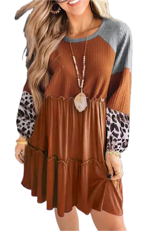 Women's Ruffled Leopard Short Sleeve Mini Dress with Stretch Bodice and Flowy Skirt 95% polyester 5% spandex