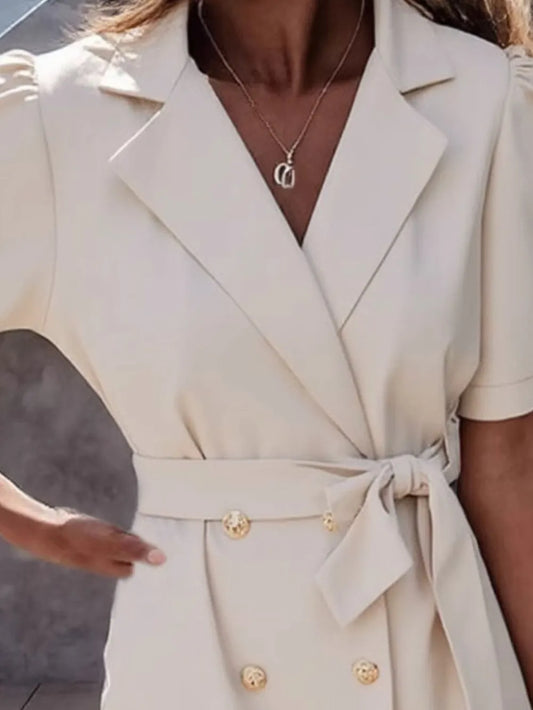 Women's Lapel Collar Short Sleeve Tie Waist Mini Dress 100% Polyester Lightweight Everyday Casual Elegant Look