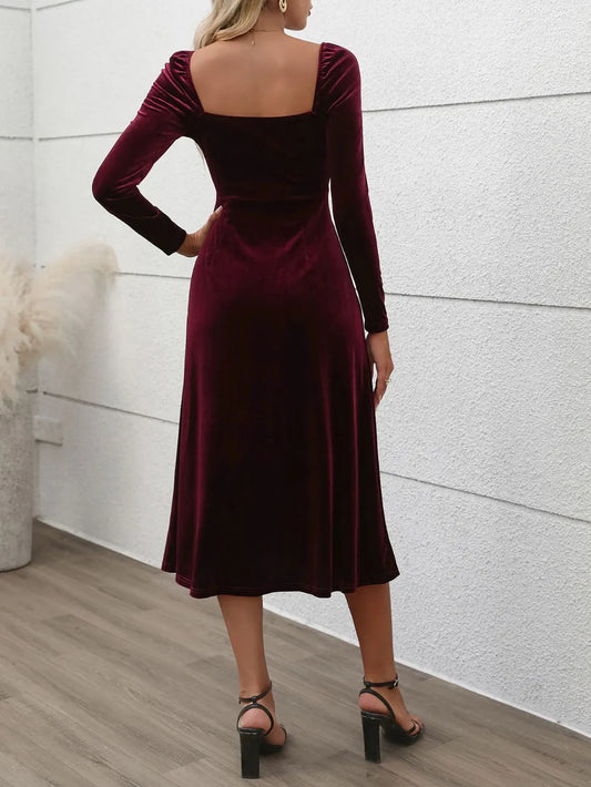 Women's Sweetheart Neck Long Sleeve Midi Dress 95% Polyester 5% Elastane Opaque Body Moderate Stretch Elegant Silhouette