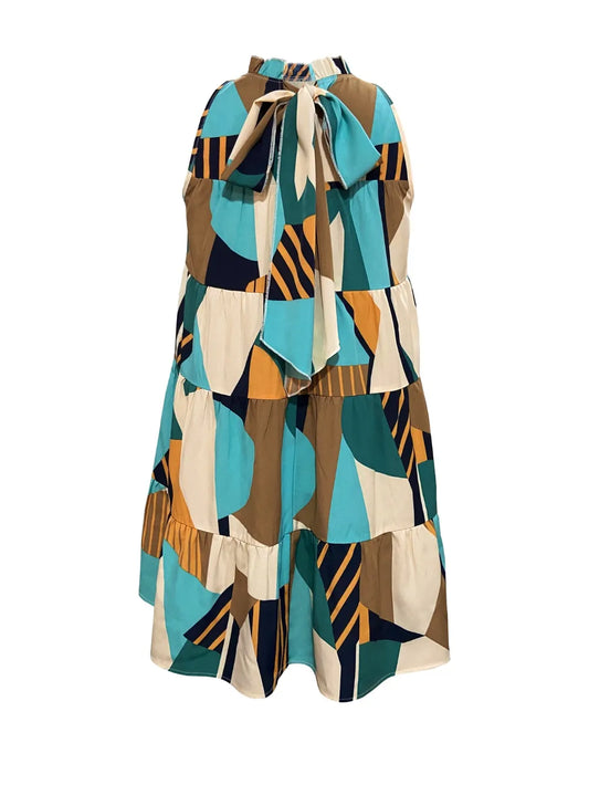 Women's Asymmetrical Hem Printed Halter Neck Dress with 100% Polyester Fabric Backless Style Lightweight Summer Look