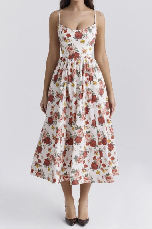 Women's Floral Print Square Neck Summer Dress 100% Polyester Lightweight Breathable Easy Care Everyday Wear Comfort