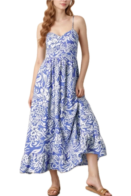 Women's Floral Print Spaghetti Strap High Waist Dress Polyester 100% Fabric Lightweight Summer Party Outfit Everyday