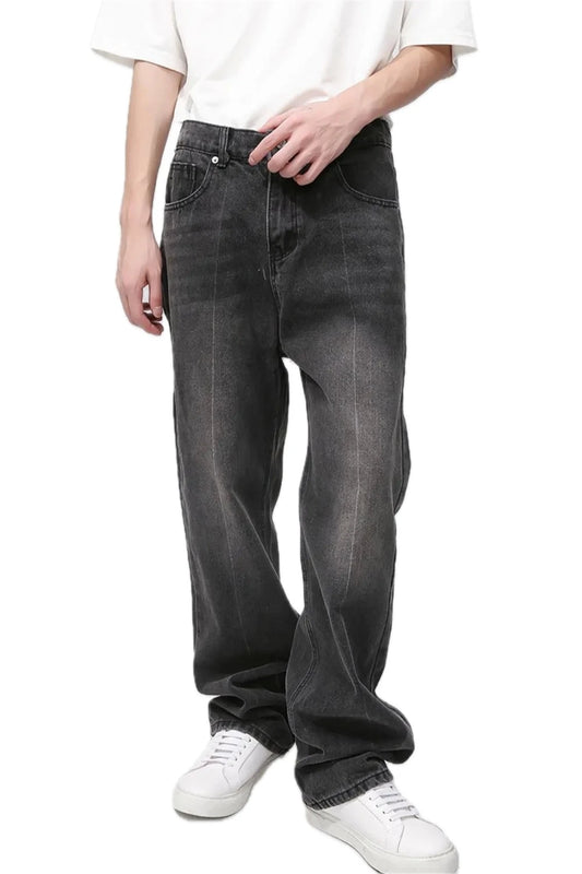 Mens Vintage Wide Leg Jeans Washed Denim Casual Relaxed Fit Everyday Trousers Durable Construction Versatile Style