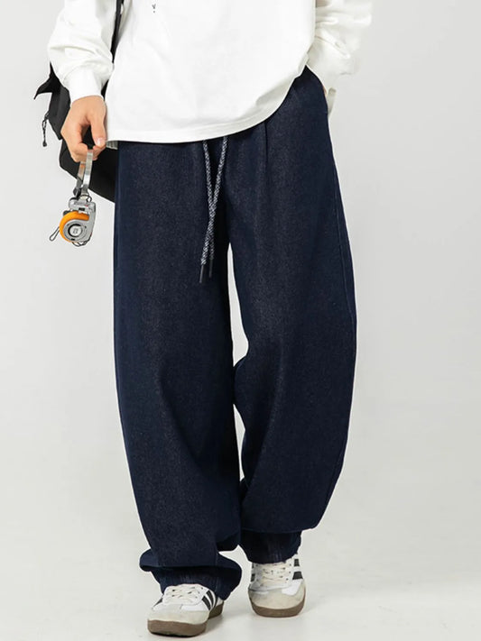 Mens Plus Size Drawstring Loose Fit Jeans Durable Denim Casual Everyday Wear Relaxed Fit Versatile Apparel For Men