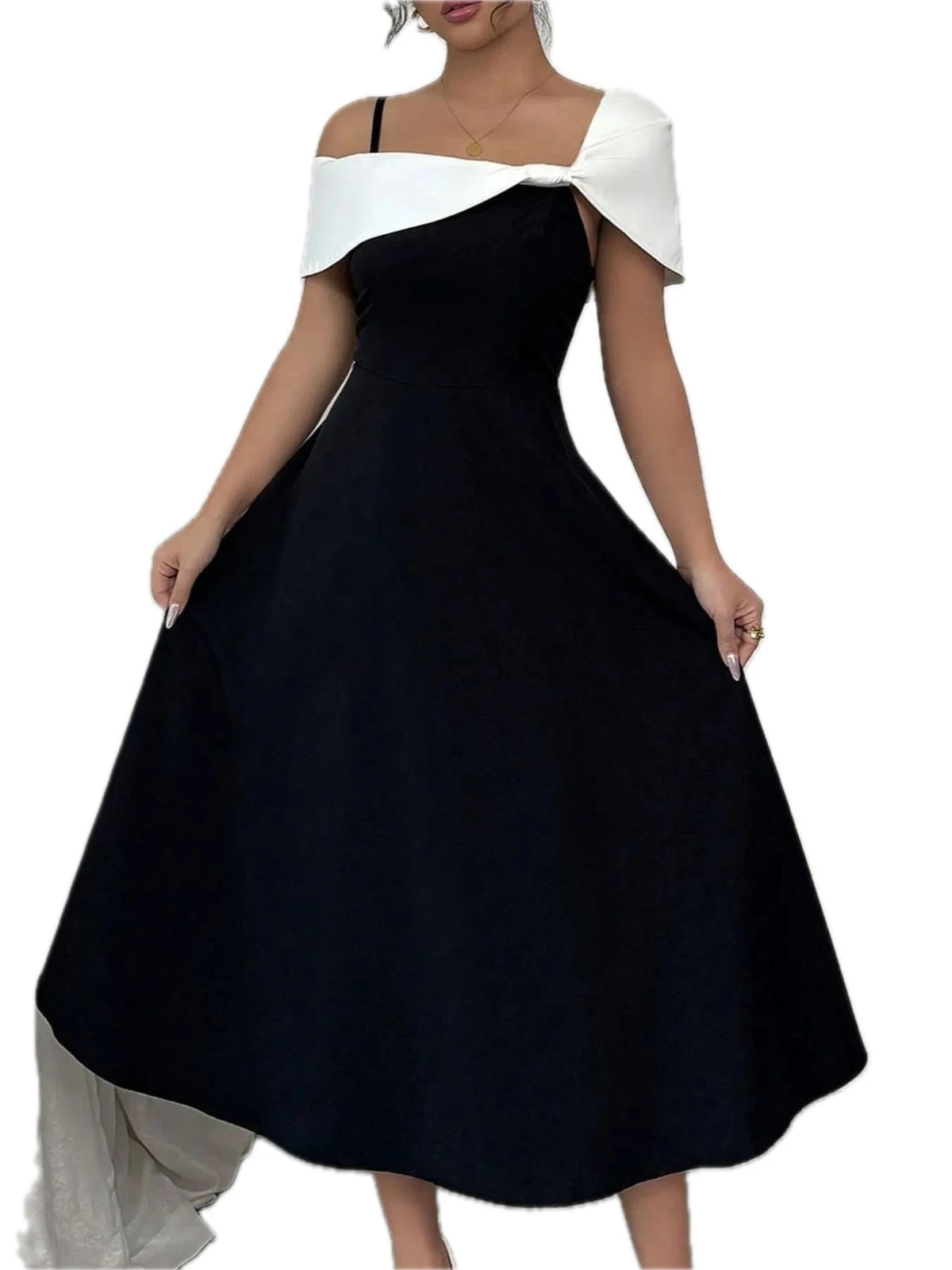 Women's Asymmetrical Neck Midi Dress with ninety five percent polyester and five percent elastane for a sleek silhouette