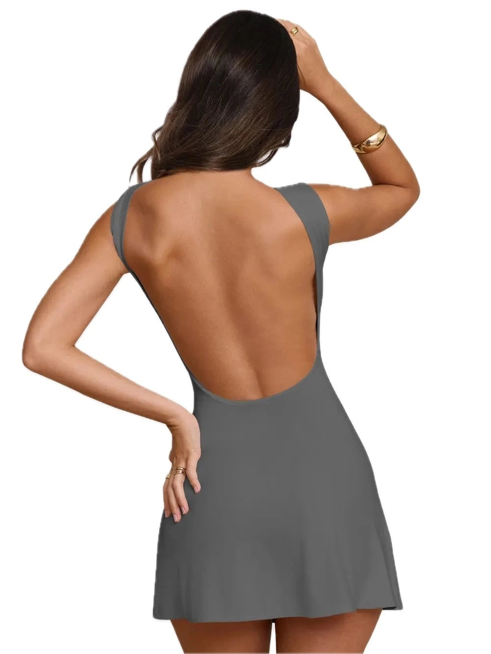 Women's Backless Wide Strap Mini Dress Sheer Bodice with Stretch Comfortable Feel 80% nylon 20% spandex Imported