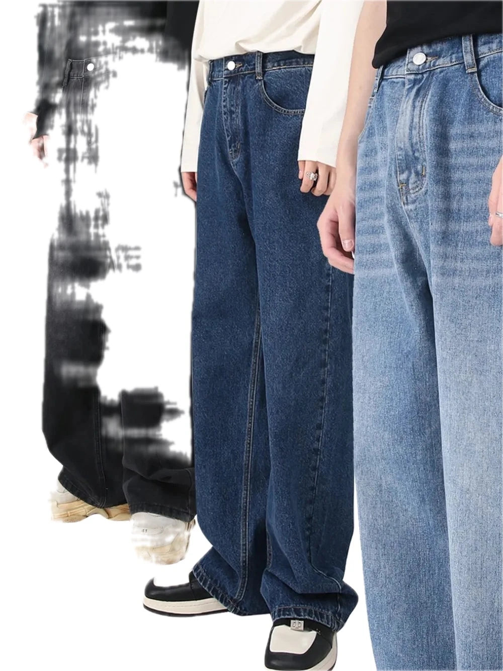 Women Baggy Jeans with Pockets Loose Fit Denim Pants High Waisted Straight Leg Casual Trousers Durable Everyday Wear