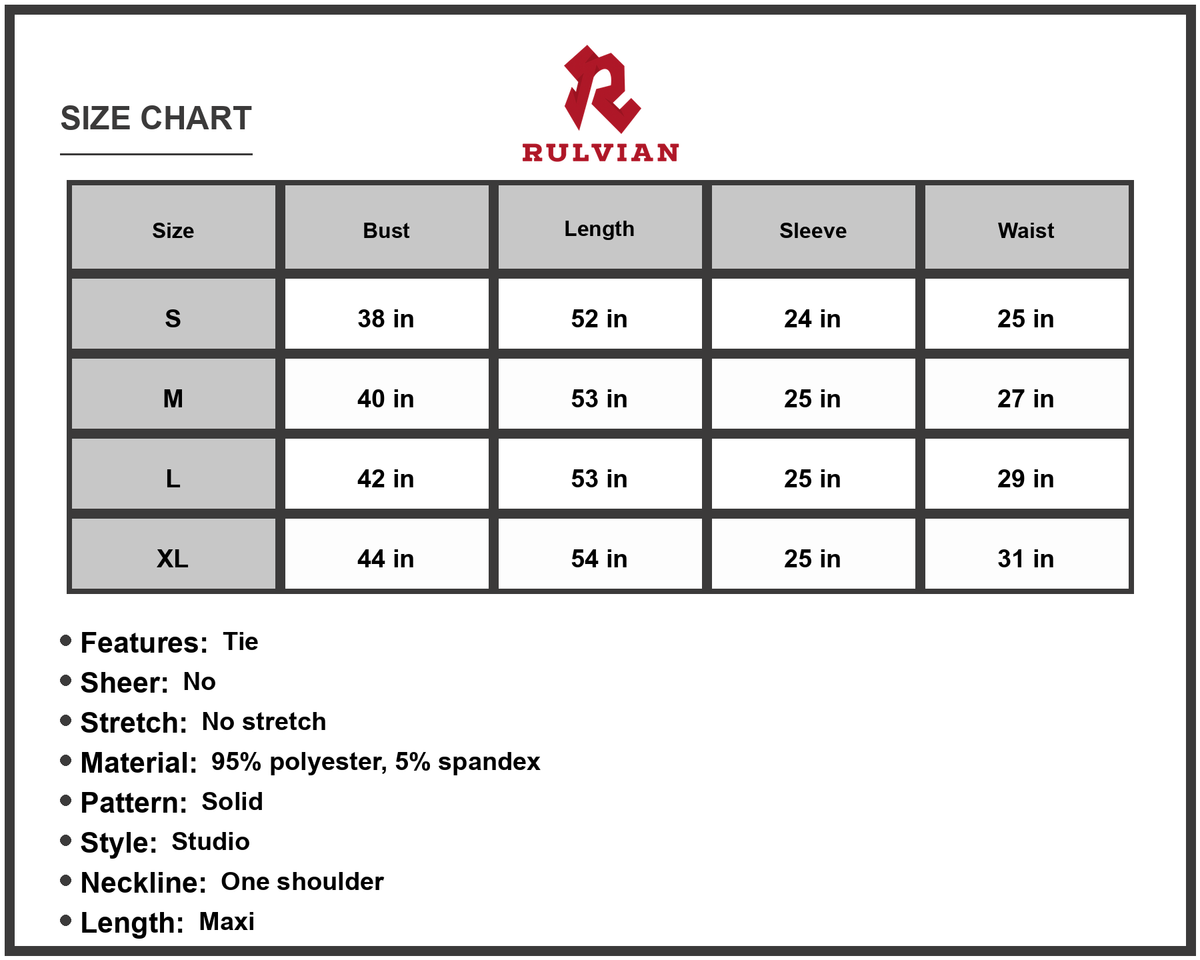 S: length 52 in, bust 38 in, waist 25 in, sleeve 24 in