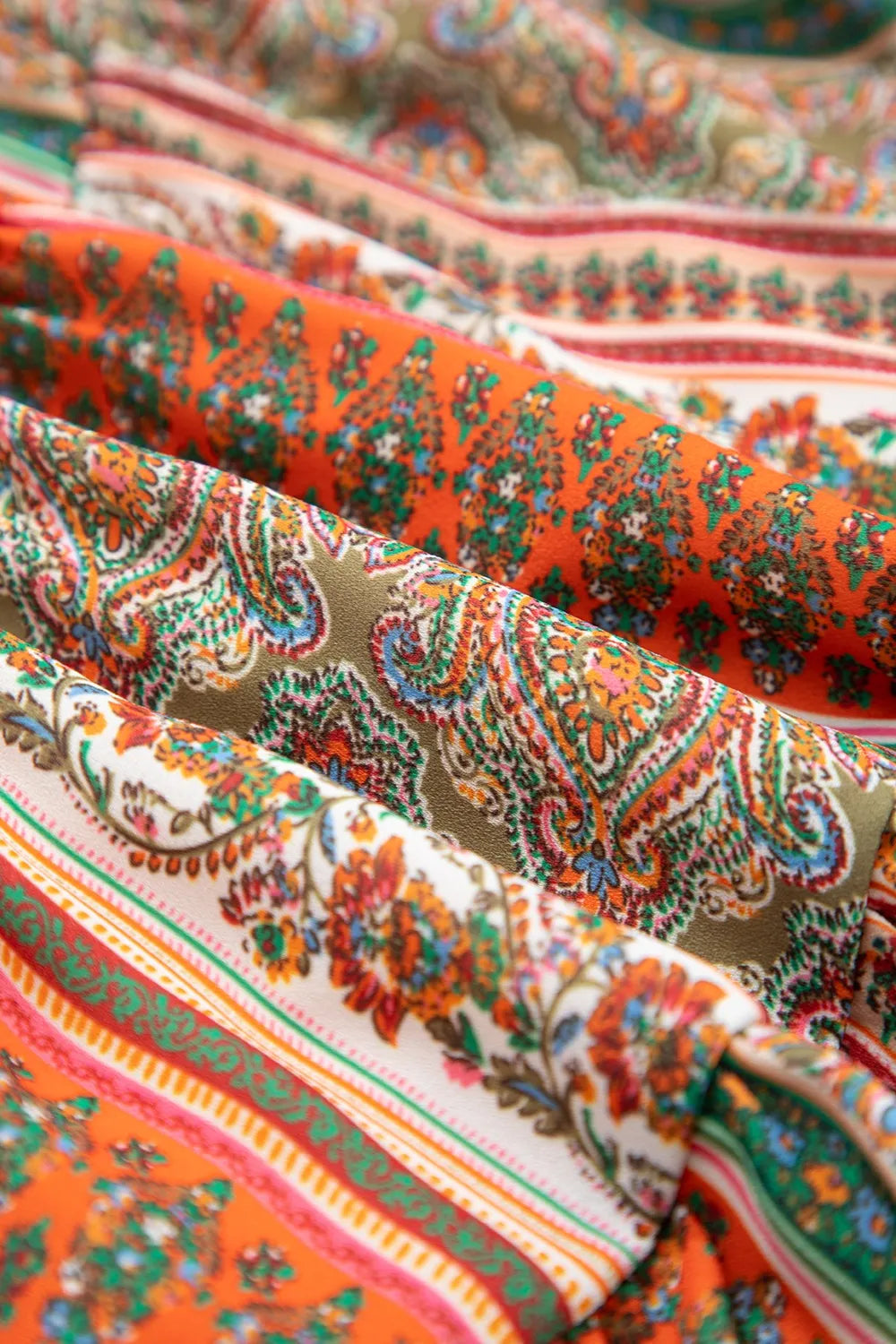 Women's Bohemian Floral Print Buttoned V Neck Ruffle Tiered Midi Dress for Summer Party Look Lightweight 100% Polyester