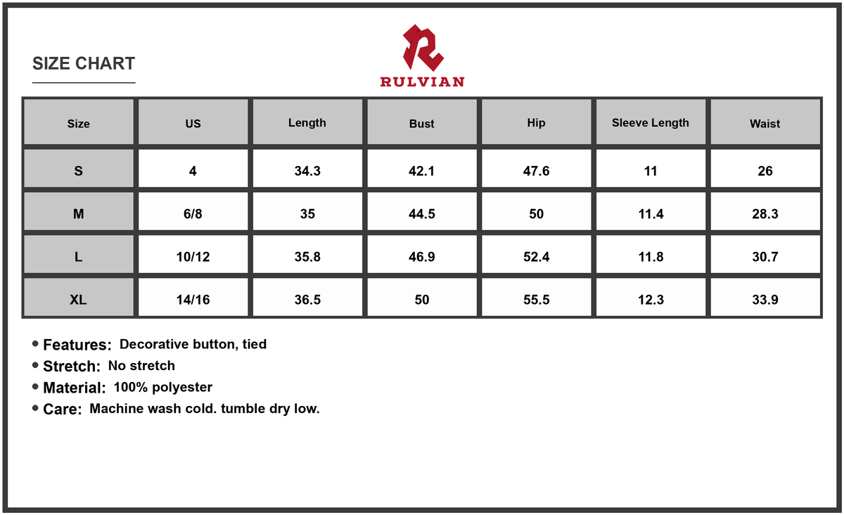 Size | US | Length | Bust | Hip | Sleeve Length | Waist |