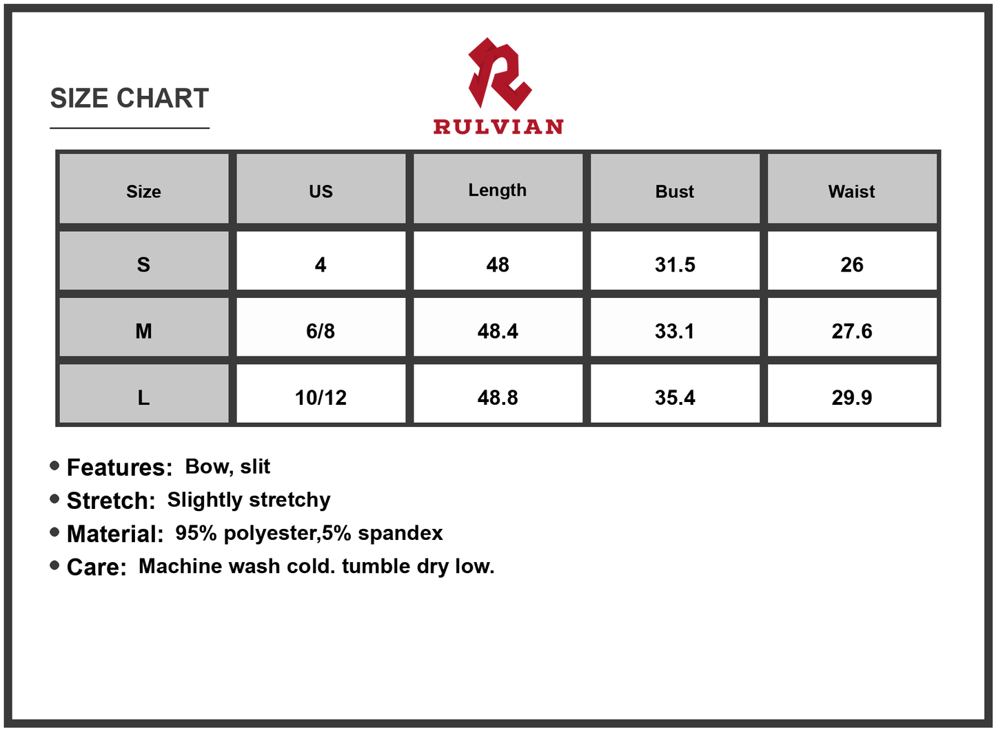 Size | US | Length | Bust | Waist |