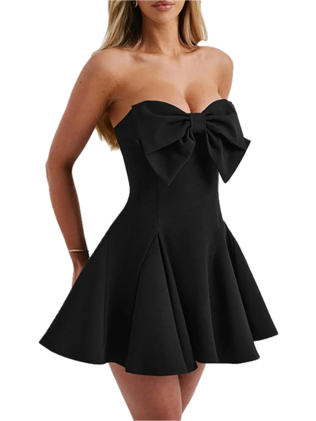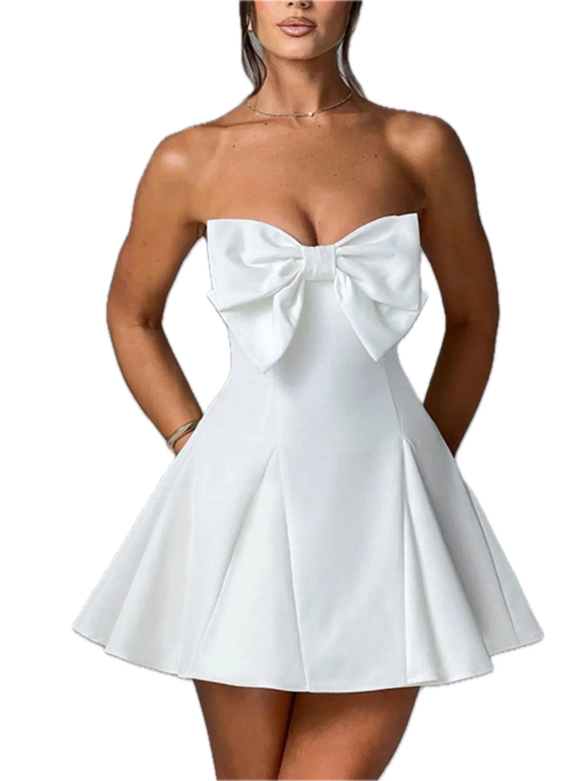 Womens Bow Tube A Line Mini Dress with Bow Detail Lined Bodice 100% Polyester Easy Care Everyday Wear for All Seasons