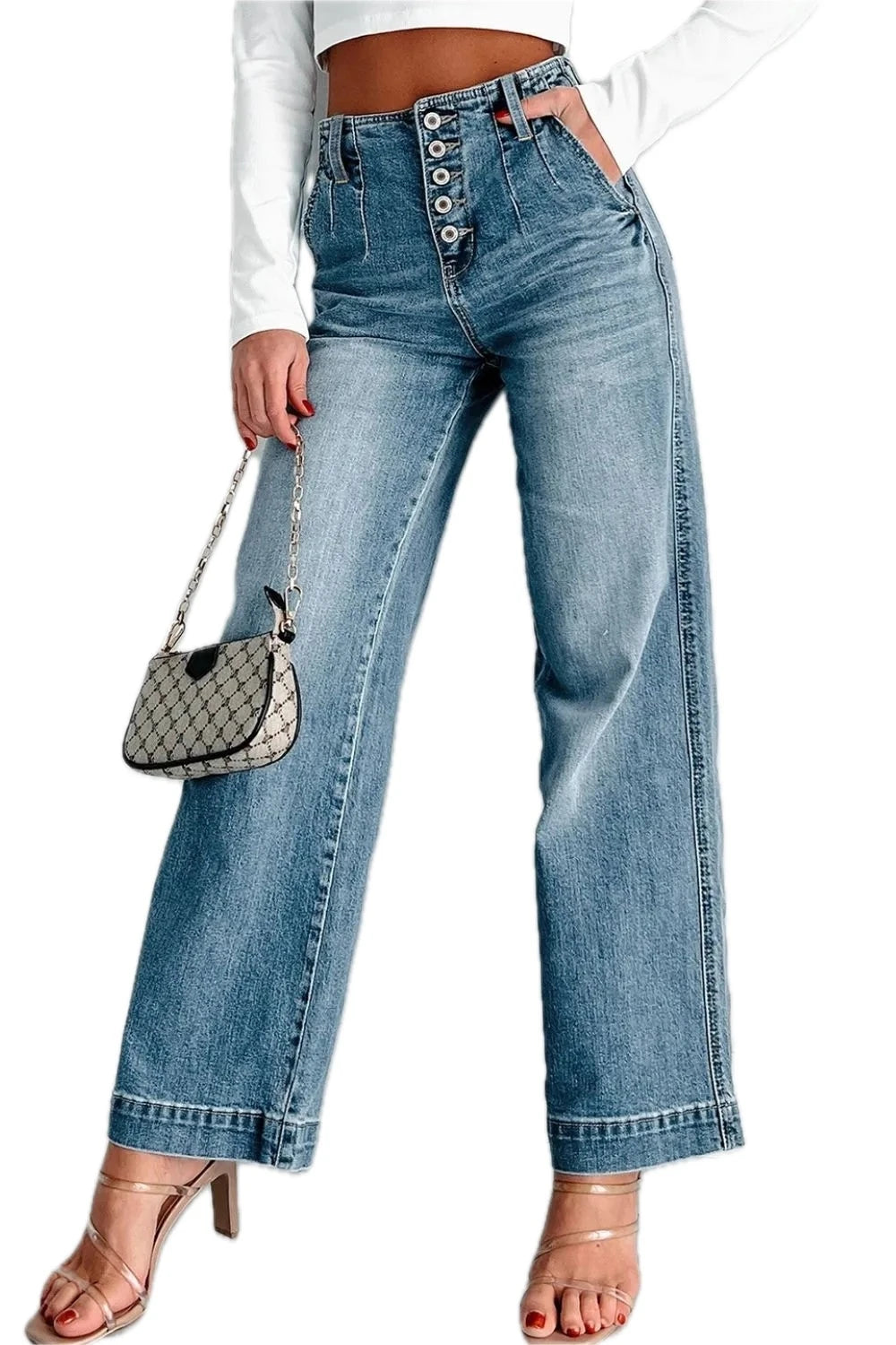 Women Button Fly High Waist Rigid Denim Jeans for Casual Everyday Wear Durable Classic Fit Versatile Outfit Essential