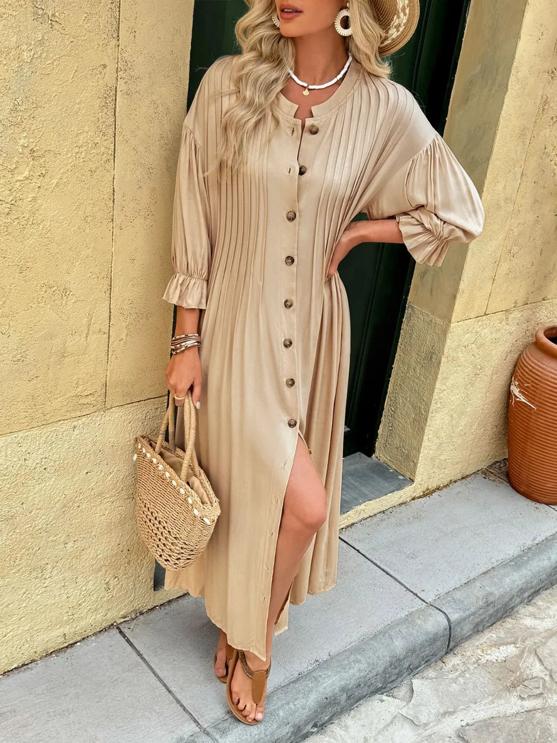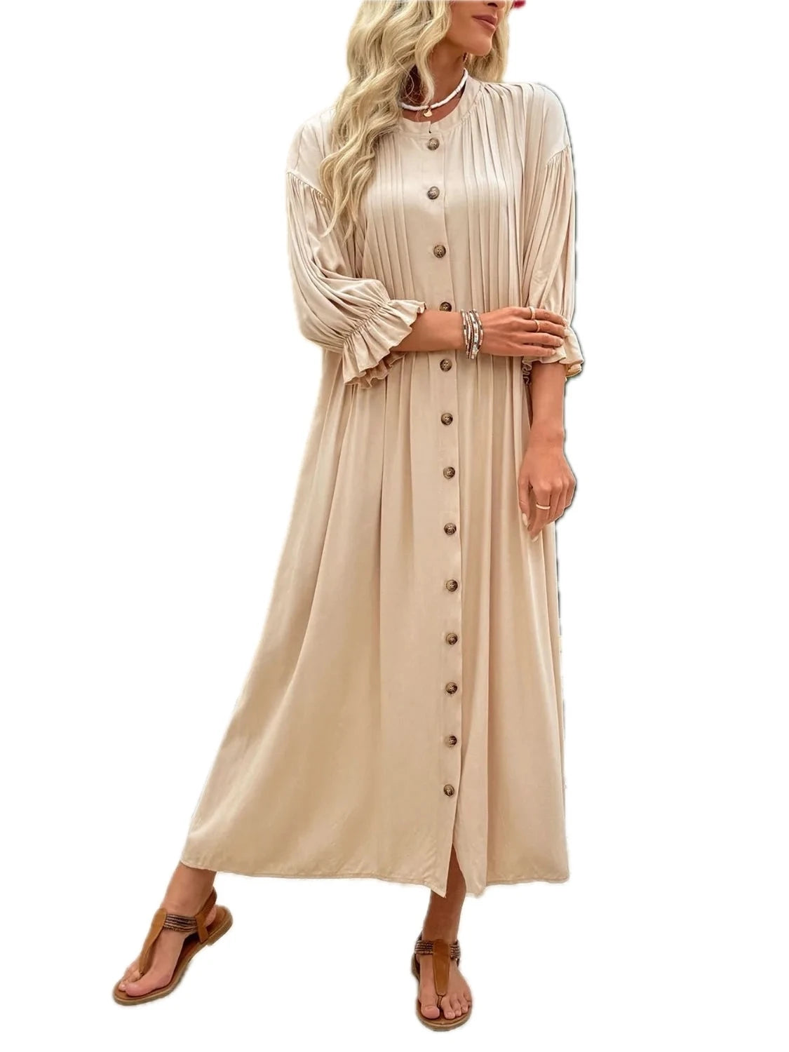 Women's Button Front Flounce Sleeve Dress 100% Viscose Lightweight Elegant Everyday Wear Soft Drape Breathable Versatile