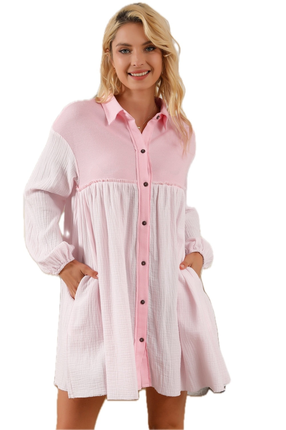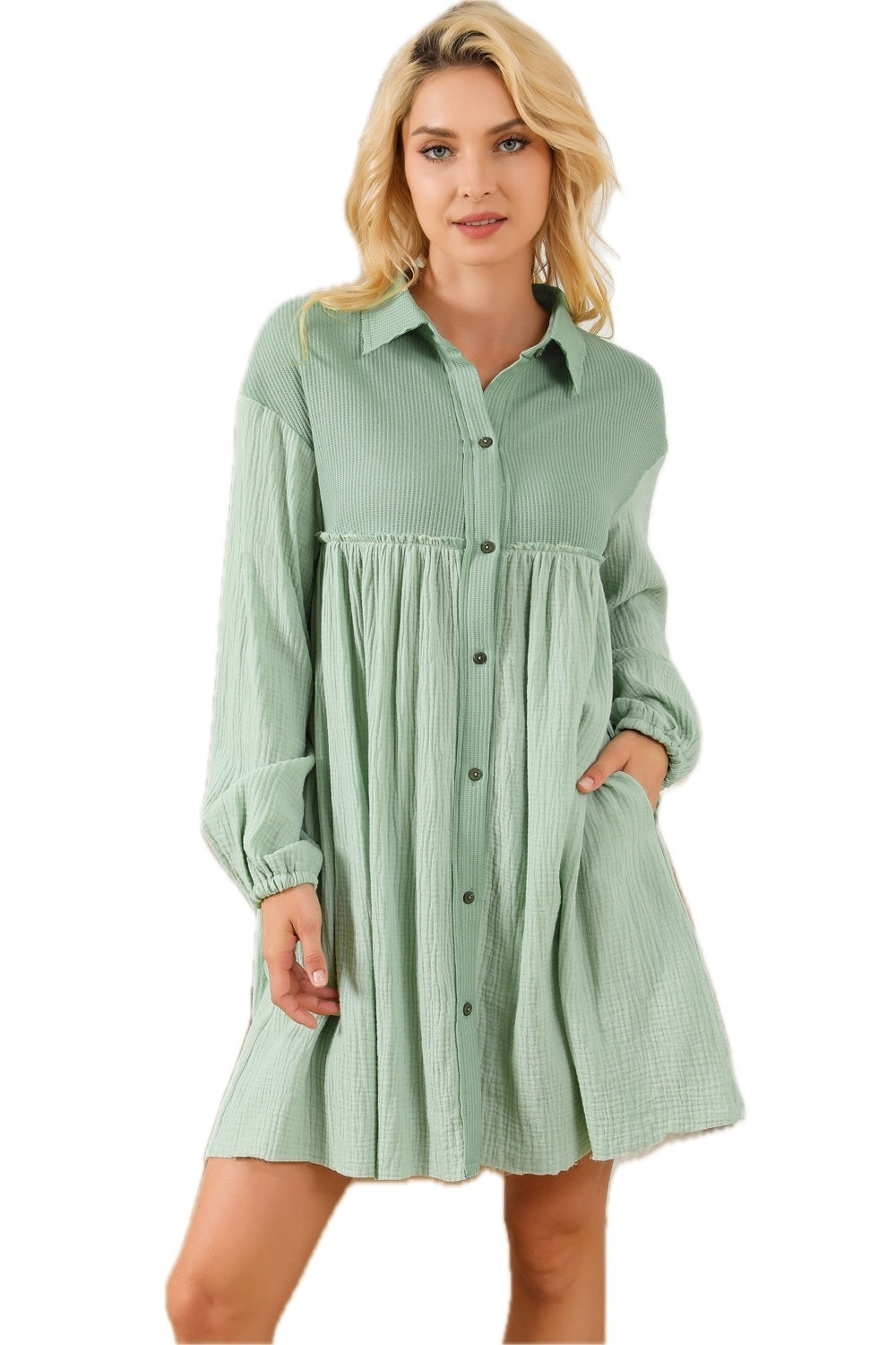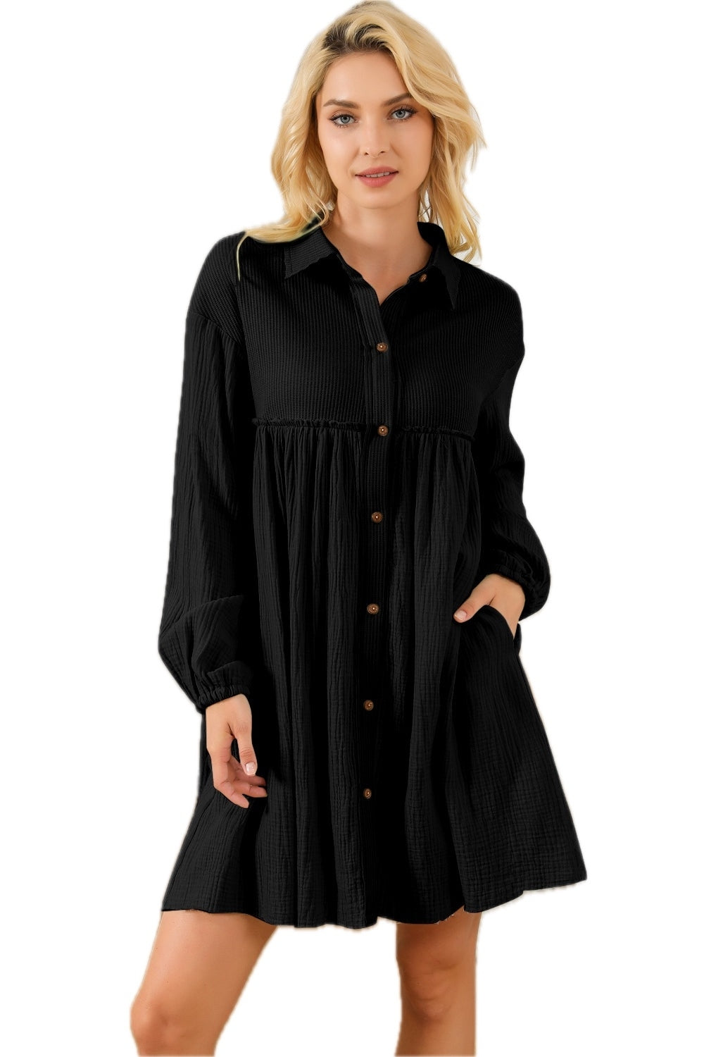 Women's Buttoned Collared Neck Dropped Shoulder Mini Dress in 100% Cotton Frill Sheer Detail for Everyday Wear