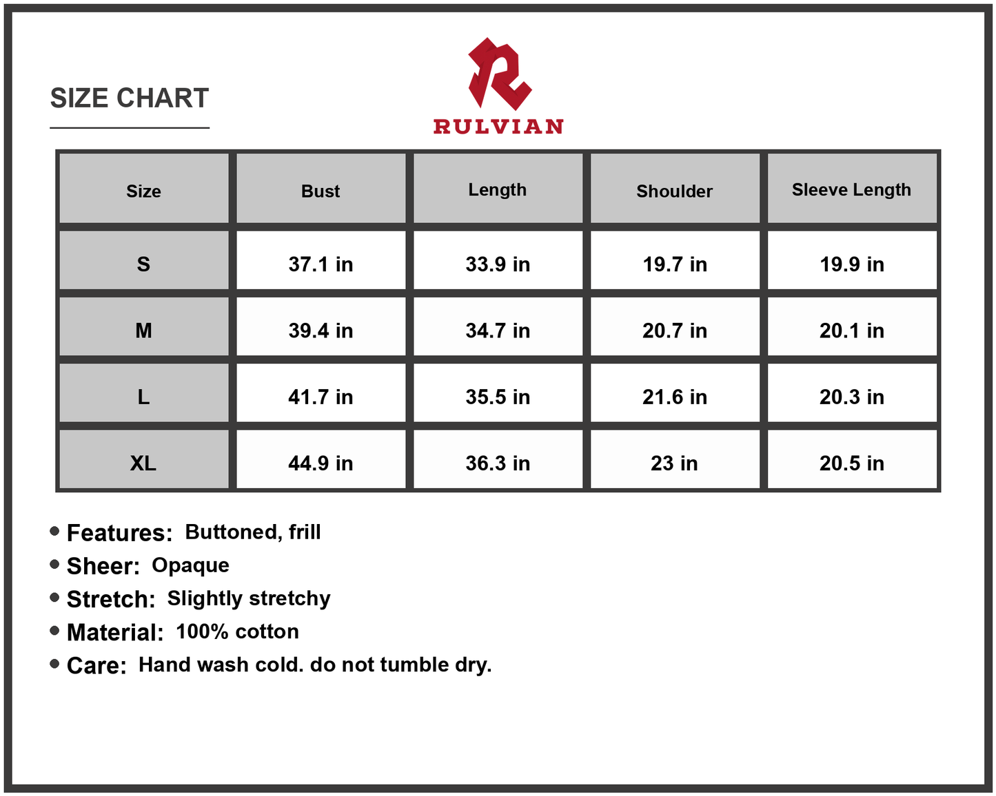 S: bust 37.1 in, shoulder 19.7 in, sleeve length 19.9 in, length 33.9 in